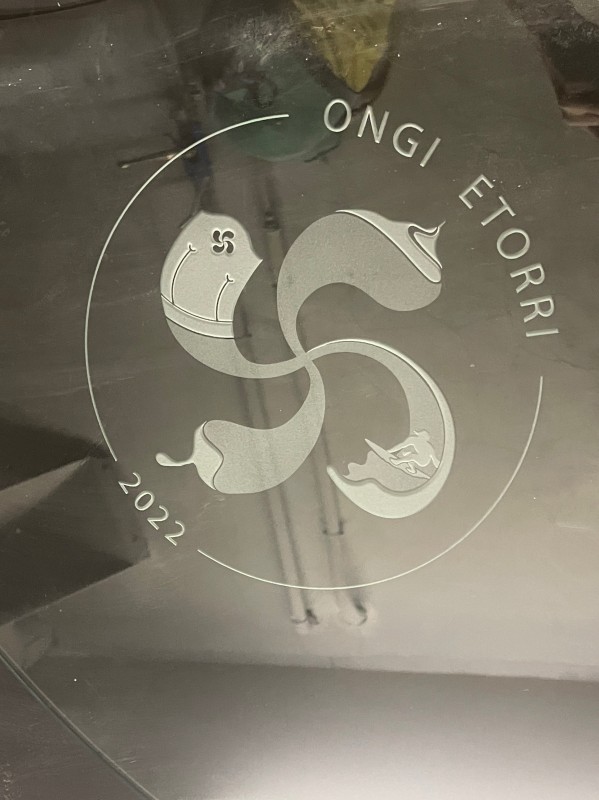 Nous avons pris le temps de faire une maquette de validation, et de suite nous avons pu lancer la gravure sur table par sablage. Le sablage de ce logo a été possible grâce au travail manuel que nous réalisons depuis deux générations ici à Gradignan.